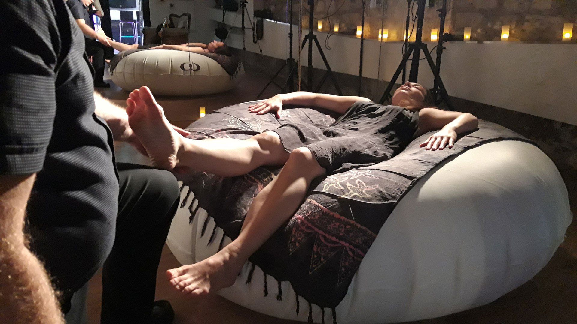 Le massage sur Waff procure des sensations aériennes pour une relaxation intense. Le Waff est un gros coussin gonflable qui peut être déployé en quelques mnutes en intérieur ou en extérieur. Il est idéal pour offrir une expérience nouvelle sur des événements,mais peut également être utilisé lors de massages à domicile.